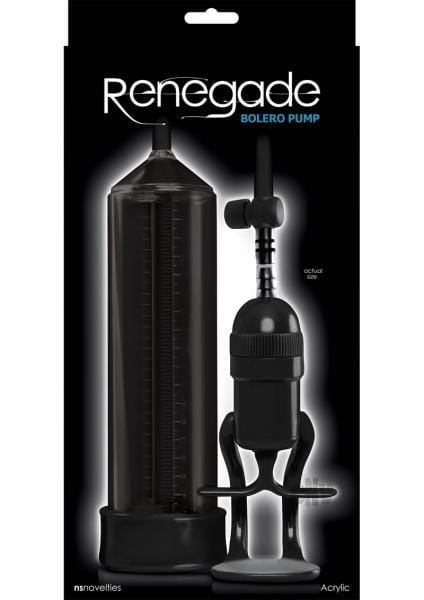 The Renegade Bolero Pump is a sleek penis pump that is designed to get him harder than ever before. The intense design enables one handed pumping and provides powerful suction for a lasting performance. It also features a measuring ruler on the pump so the user can track his progress. The design has a 9 inches long industrial grade acrylic pumping cylinder, comes with a soft Thermoplastic Elastomers TPE donut base for extra comfort during use and is presented in a contemporary black packaging.
